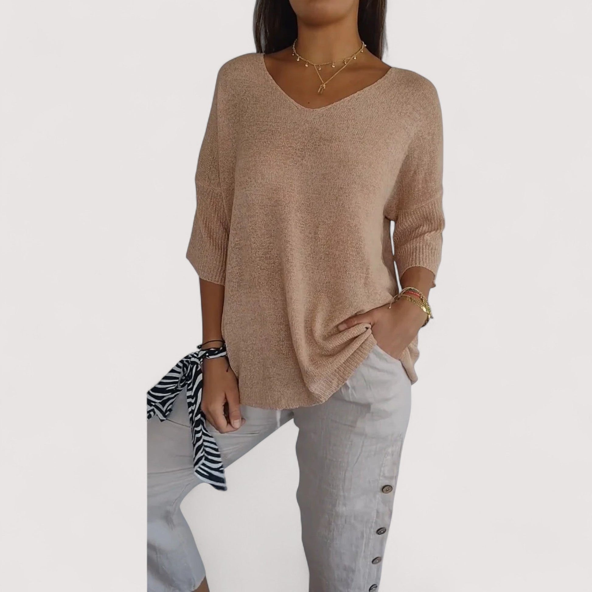Weich, leicht, atmungsaktiv – dieser Strickpullover schmiegt sich an dich, ohne einzuengen. Für Tage, an denen du dich frei, schön und ganz bei dir fühlen willst.